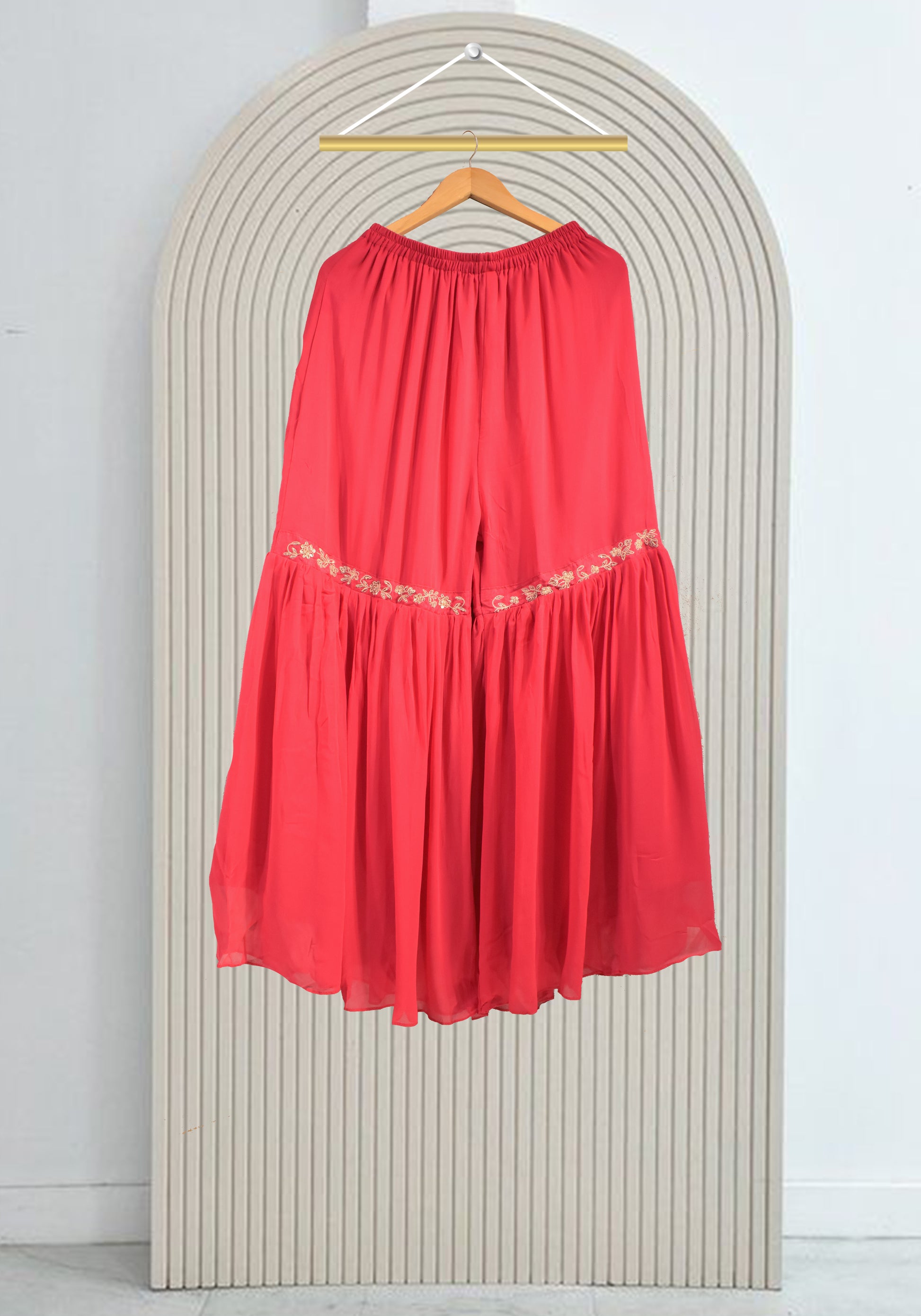 Hot Pink Thread Emb on Neck Kurta Sharara with Cutwork Emn Organza Dupatta Suit Set
