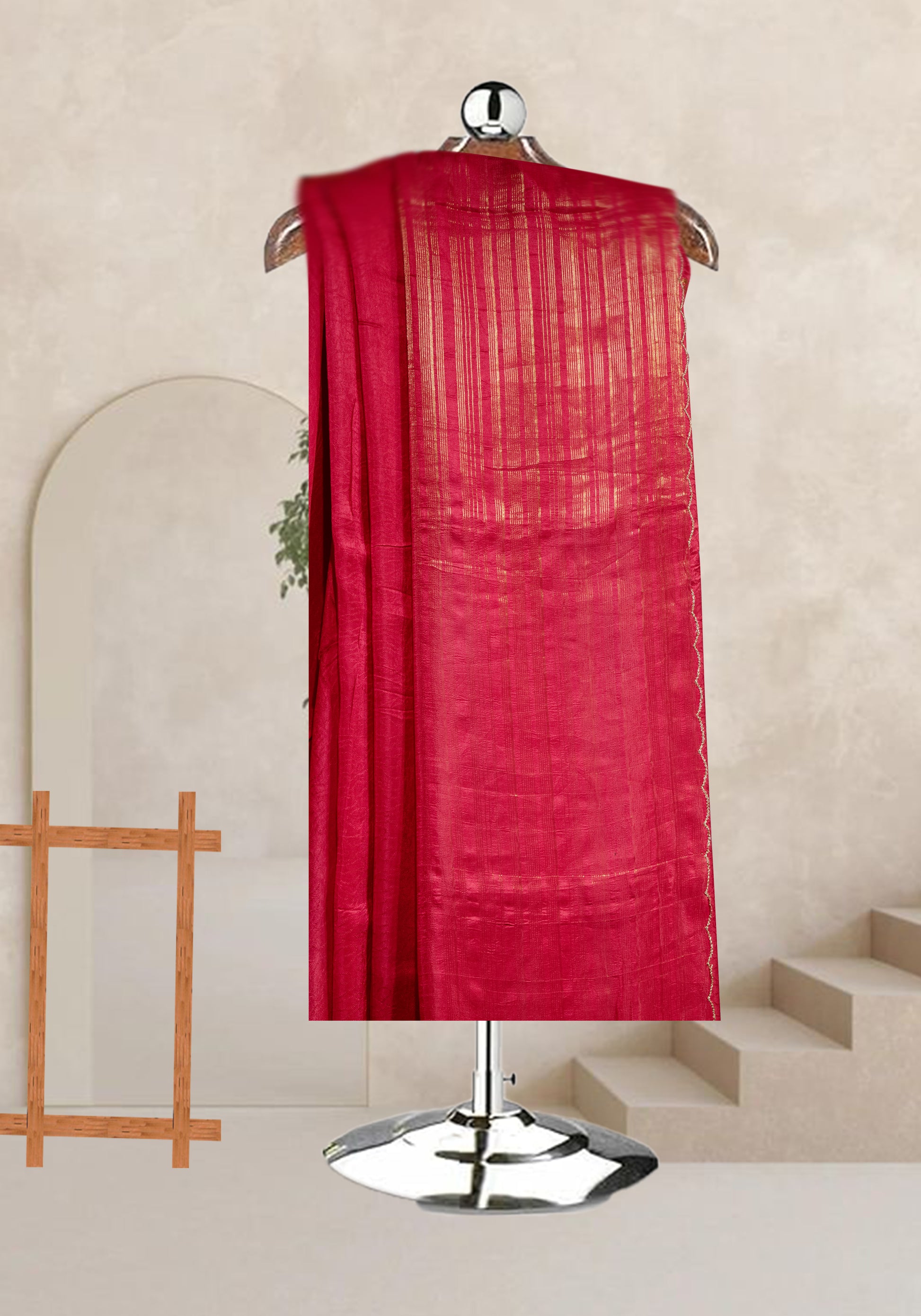 RED BANARASI BORDER WITH TOUCH OF EMBROIDERY AT BORDER SAREE IN MUNGA SILK